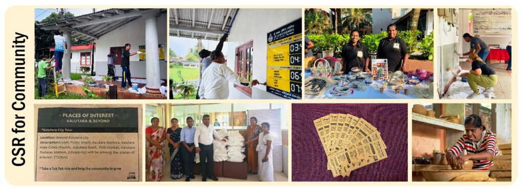 The hotel’s CSR vision is built around three focus areas: Children, Community, and Environment. Under the Children’s Development initiative, RPBH provides continuous support through donations of school uniforms, books, event sponsorships, and educational trips for children at The Village Learning Tree Preschool, as well as assistance for the Sukitha Children’s Orphanage. The hotel also organises educational awareness programmes and guided visits for numerous schools, especially within the Kalutara District, as well as for hotel school students, and supports university groups in their research, promoting awareness of sustainability and career opportunities in the hospitality industry. Through its Community Empowerment initiatives, the hotel has implemented several long-term and short-term programmes aimed at enhancing local livelihoods and promoting inclusive growth. These include contributions to the Kalutara North Railway Upgrading Project, continuous support for Nagoda General Hospital, and empowering small- and medium-scale entrepreneurs in the Millaniya village by providing opportunities to sell their products within the hotel premises. Additionally, the hotel organises re-gifting initiatives benefiting hospitals, elders’ homes, prison inmates, and religious institutions, further strengthening social well-being at the community level. A unique highlight of RPBH’s community strategy is its effort to promote Kalutara City as a sustainable tourism destination. The hotel supports tuk-tuk drivers from nearby villages by organising Kalutara City Tours, encouraging them to showcase local attractions and benefit from responsible tourism. To enhance visibility and community income, the hotel also promotes Kalutara through professionally produced video clips and leaflets that highlight cultural landmarks, artisanal crafts, and nature-based experiences. These actions directly contribute to community upliftment while reinforcing destination branding for the region.